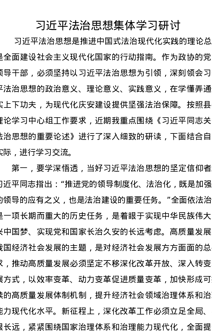 习近平法治思想集体学习研讨发言