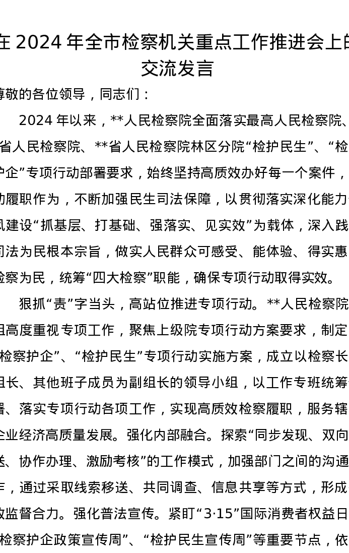 在2024年全市检察机关重点工作推进会上的交流发言
