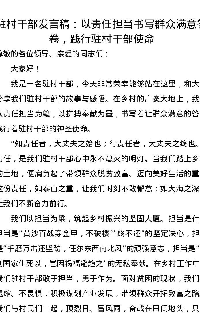 驻村干部发言稿:以责任担当书写群众满意答卷,践行驻村干部使命