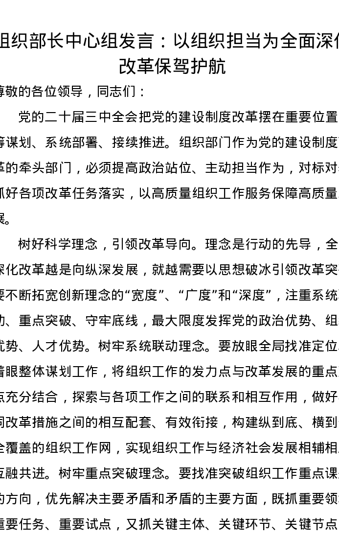 组织部长中心组发言:以组织担当为全面深化改革保驾护航