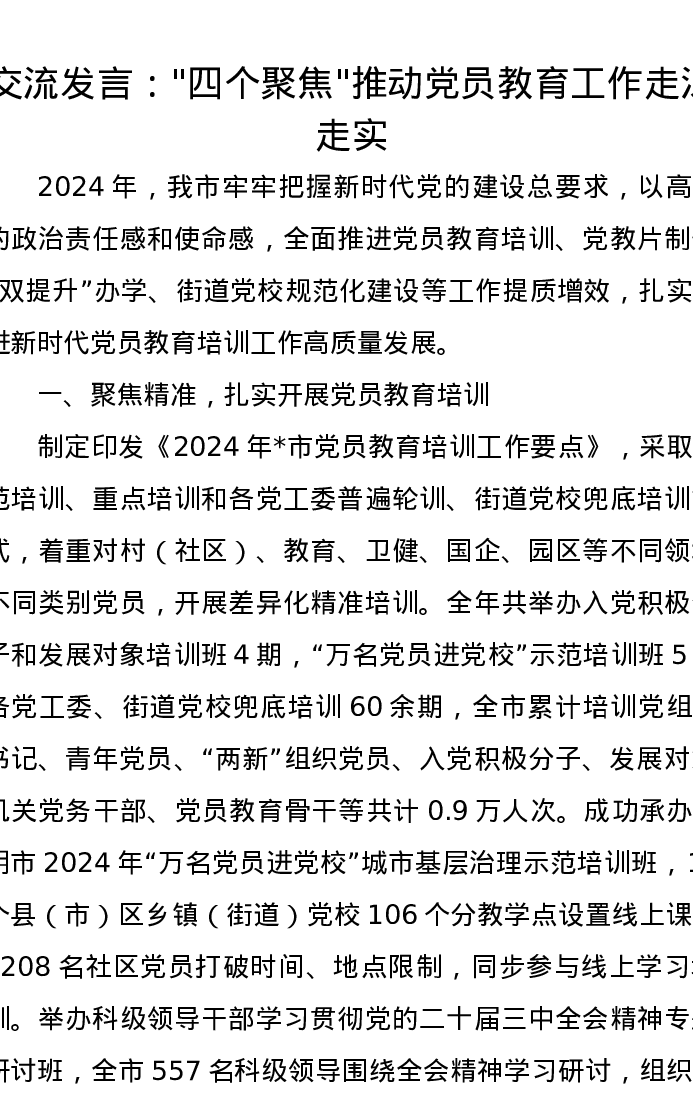 交流发言:四个聚焦推动党员教育工作走深走实