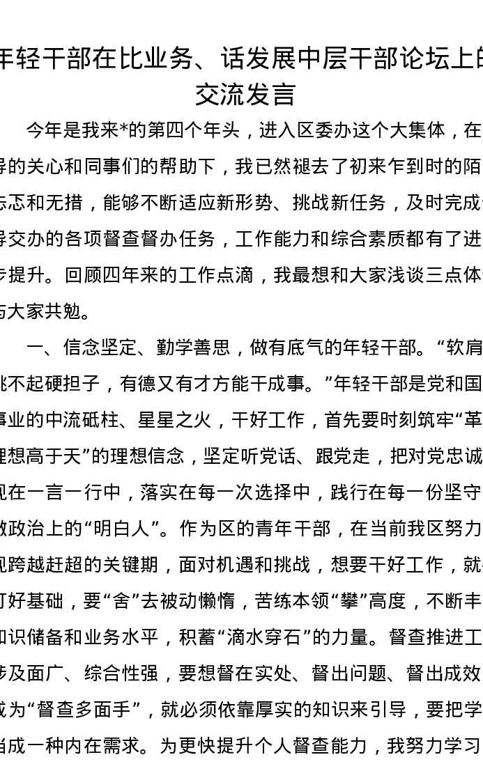 年轻干部在比业务、话发展中层干部论坛上的交流发言