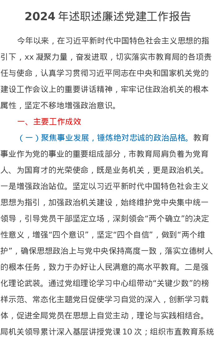 XX教育局2024年述职述廉述党建工作报告