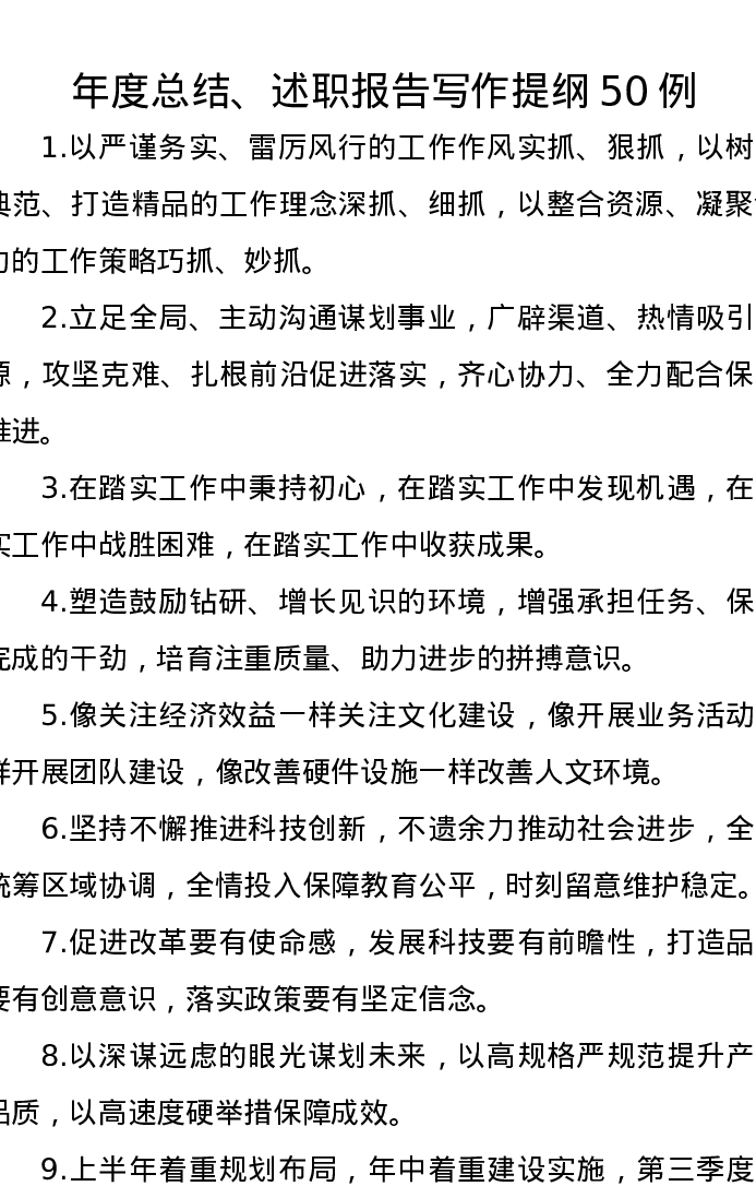 年度总结、述职报告写作提纲50例