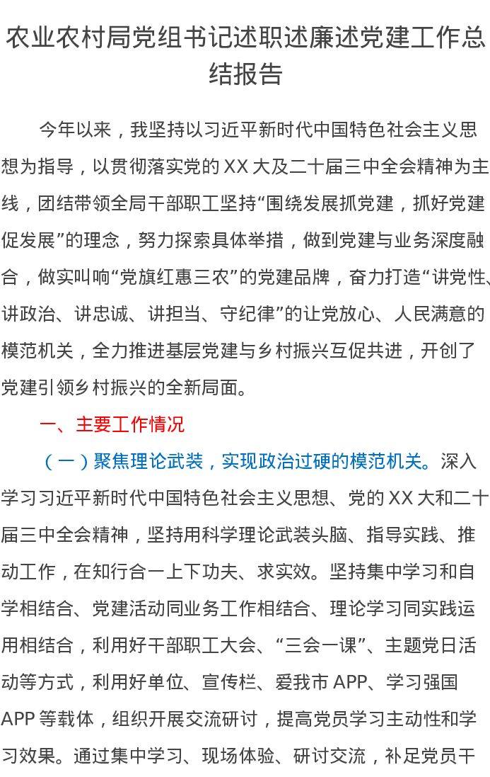 农业农村局党组书记2024述职述廉述党建工作总结报告