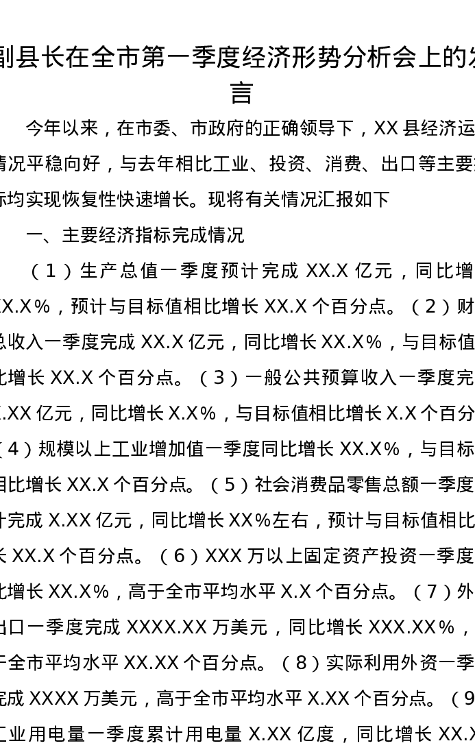 副县长在全市第一季度经济形势分析会上的发言