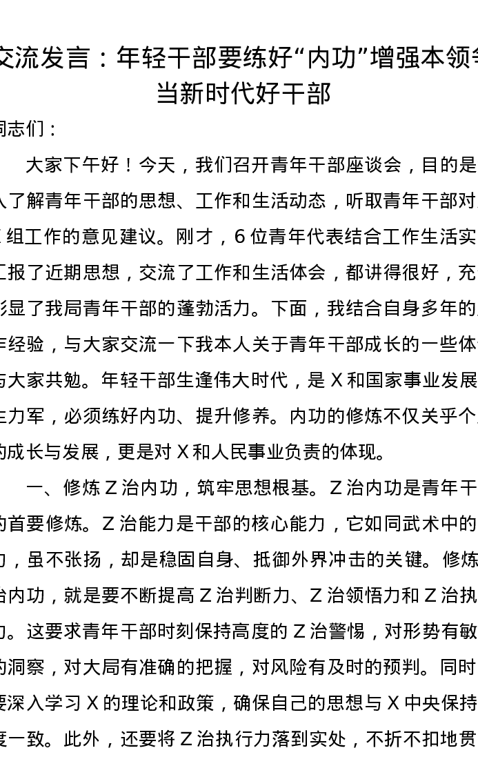 交流发言:年轻干部要练好“内功”增强本领争当新时代好干部