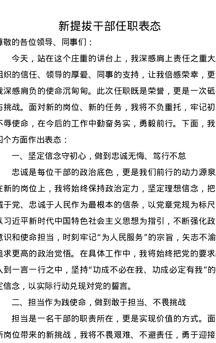 新提拔干部任职表态发言