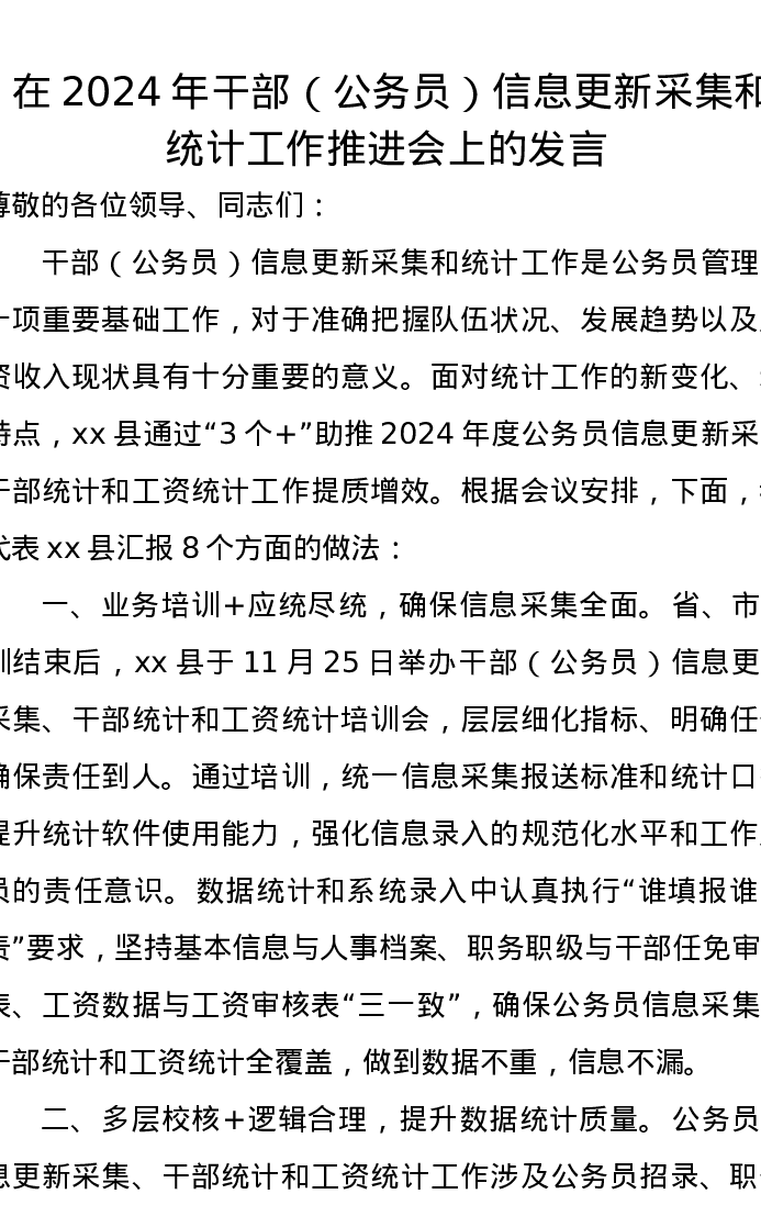 在2024年干部(公务员)信息更新采集和统计工作推进会上的发言
