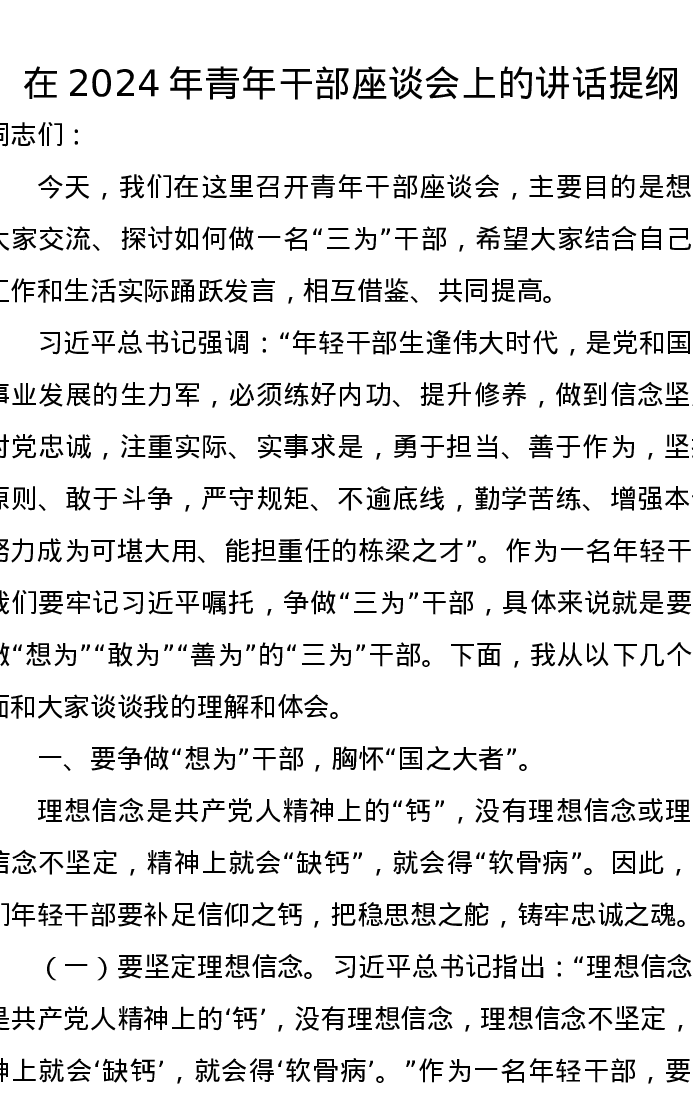 在2024年青年干部座谈会上的讲话提纲