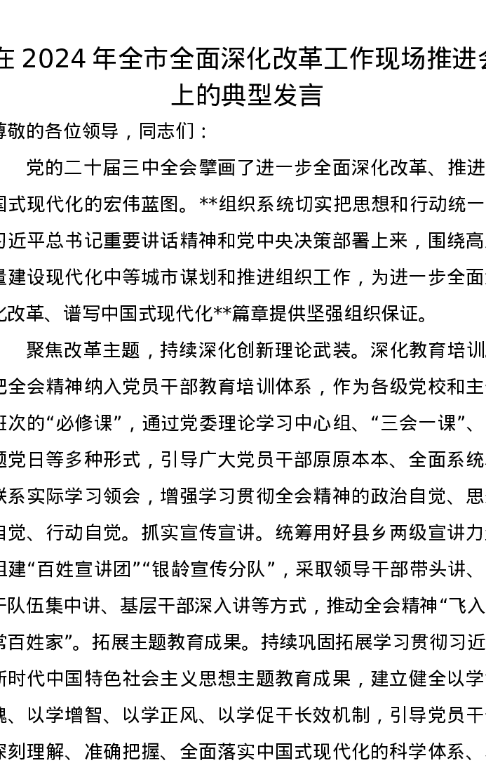 在2024年全市全面深化改革工作现场推进会上的典型发言