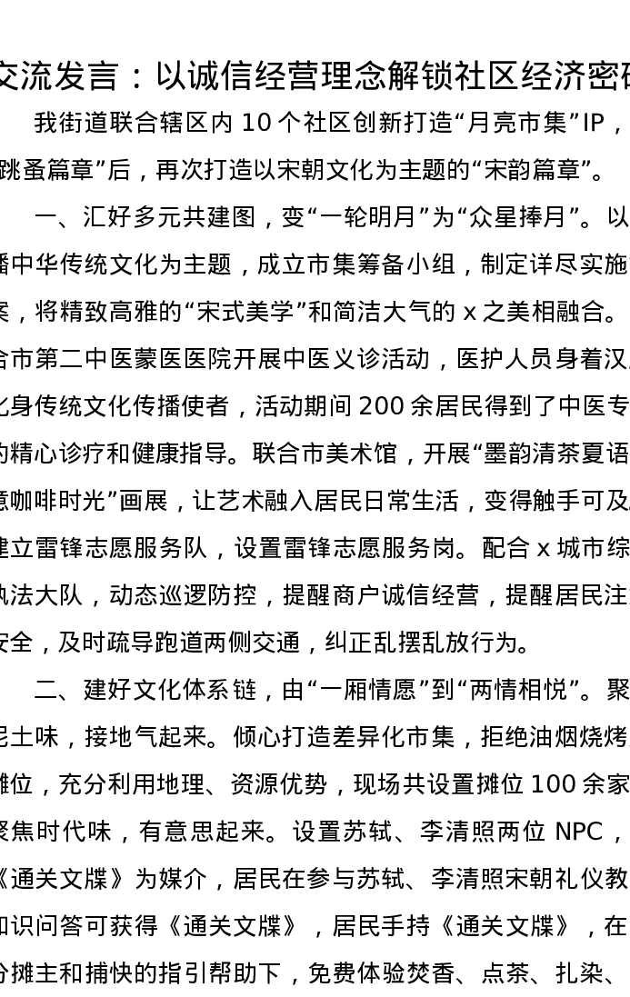 交流发言:以诚信经营理念解锁社区经济密码