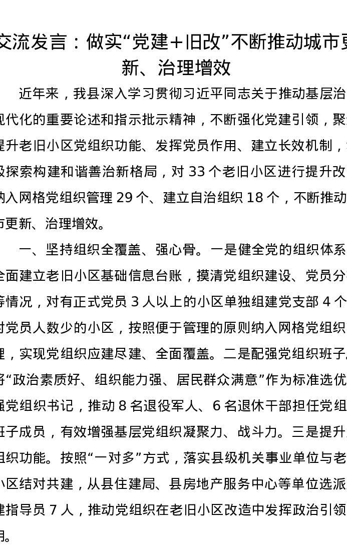 交流发言:做实“党建+旧改”不断推动城市更新、治理增效