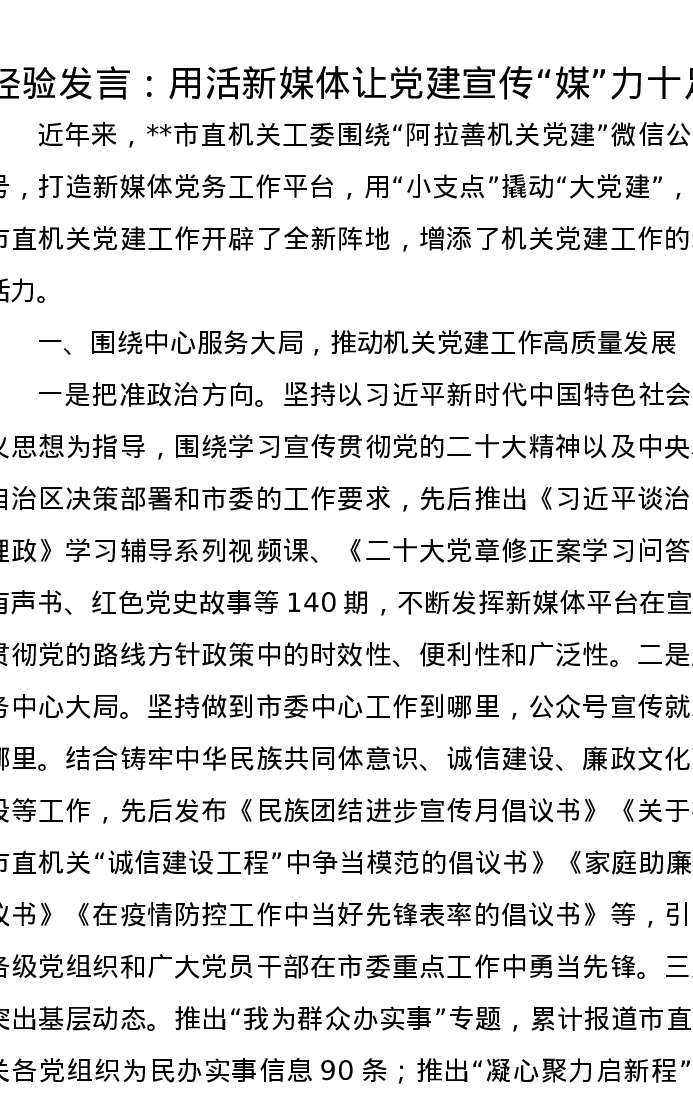 经验发言:用活新媒体让党建宣传“媒”力十足