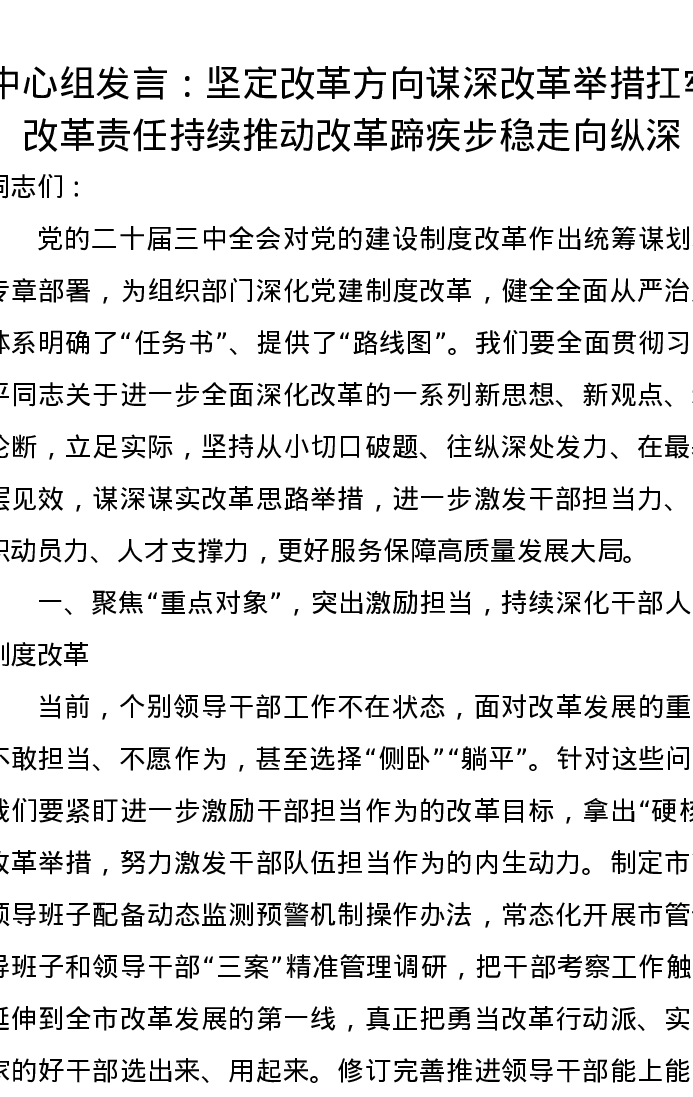 中心组发言:坚定改革方向谋深改革举措扛牢改革责任持续推动改革蹄疾步稳走向纵深