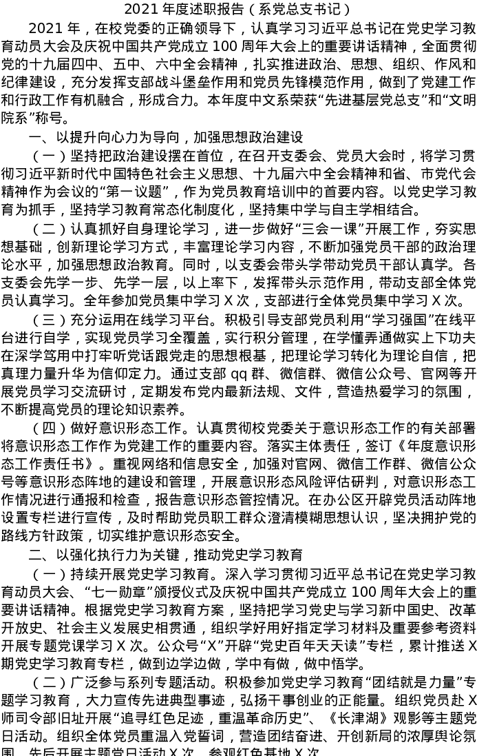 20220105-2021年度述职报告(系党总支书记)