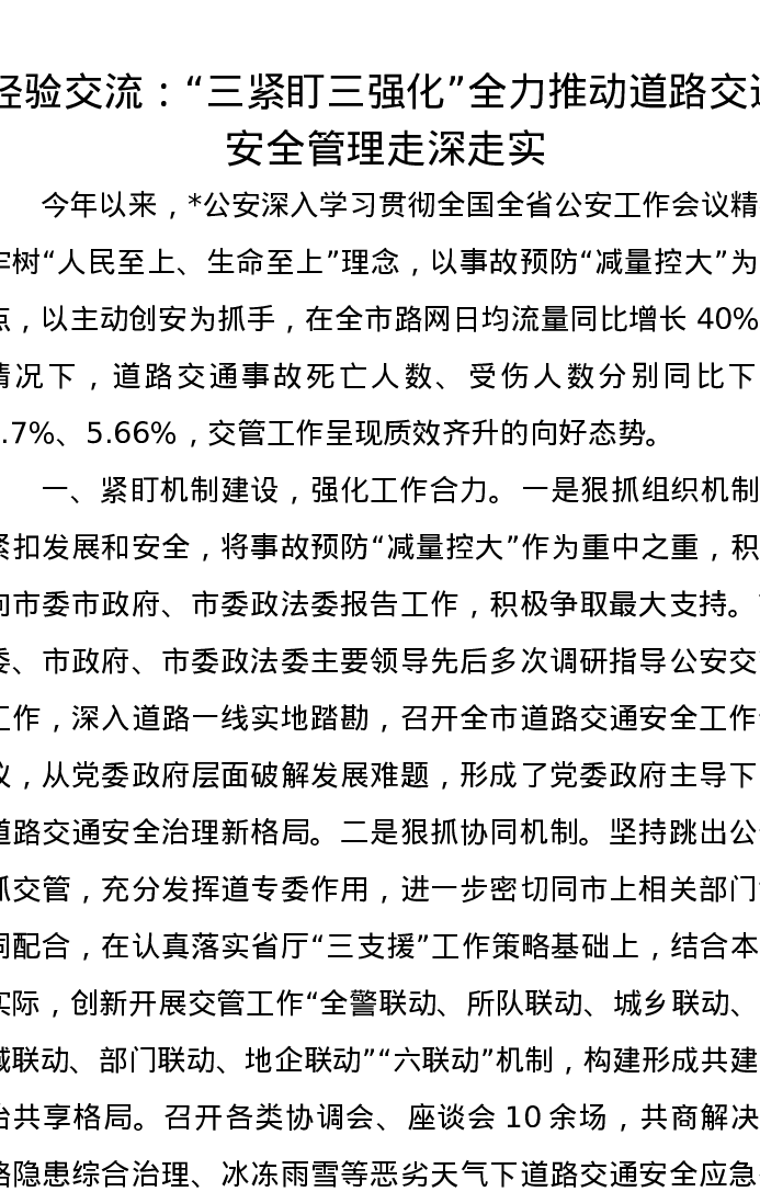 经验交流:“三紧盯三强化”全力推动道路交通安全管理走深走实