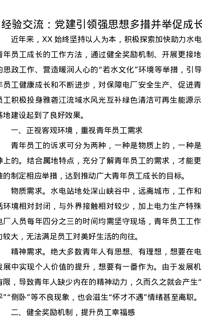 经验交流:党建引领强思想多措并举促成长