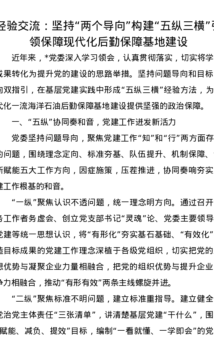 经验交流:坚持“两个导向”构建“五纵三横”引领保障现代化后勤保障基地建设