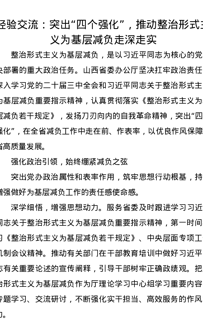 经验交流:突出“四个强化”,推动整治形式主义为基层减负走深走实
