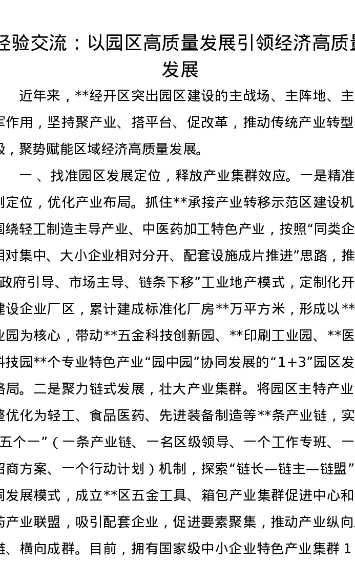 经验交流:以园区高质量发展引领经济高质量发展