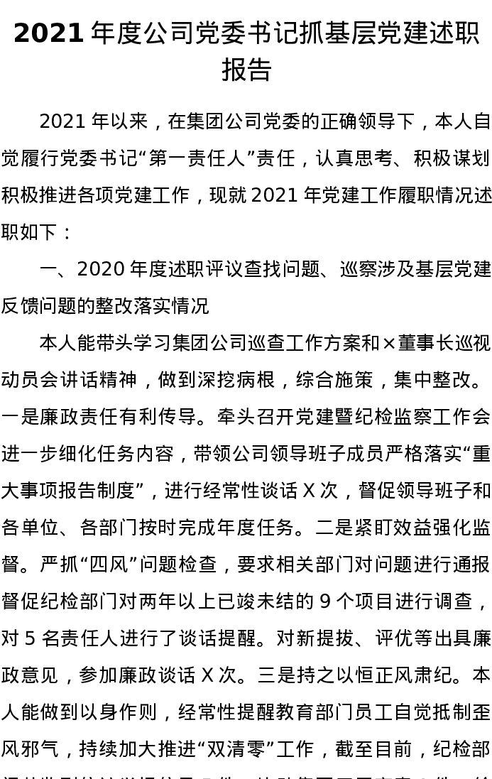 20220109-2021年度公司党委书记抓基层党建述职报告