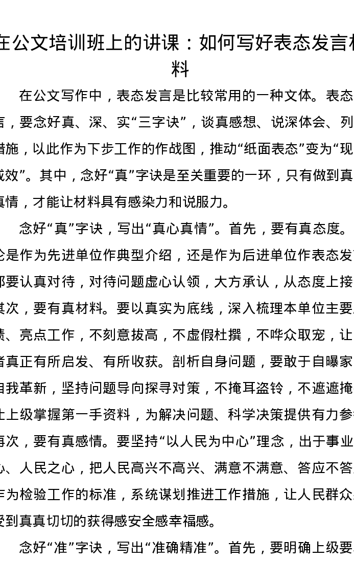 在公文培训班上的讲课:如何写好表态发言材料