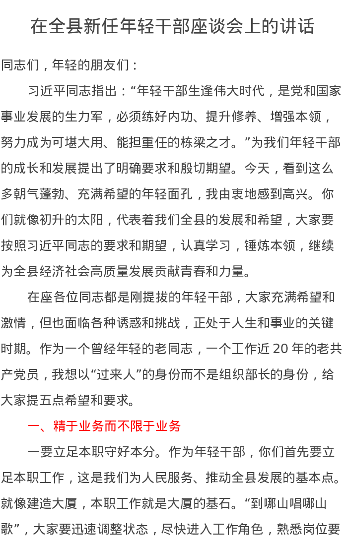 在全县新任年轻干部座谈会上的讲话