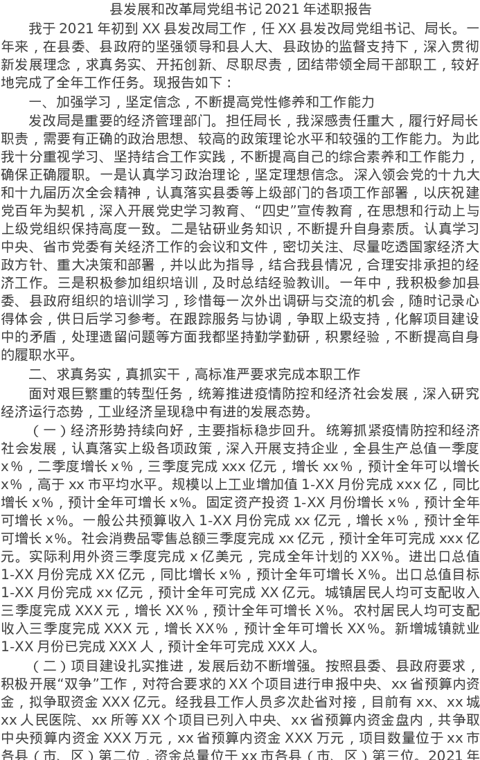 20220119县发展和改革局党组书记2021年述职报告