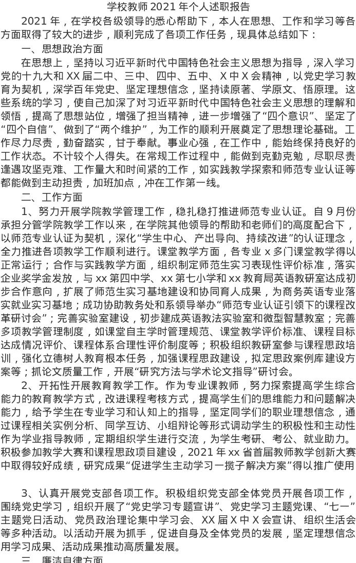 20220125学校教师2021年个人述职报告