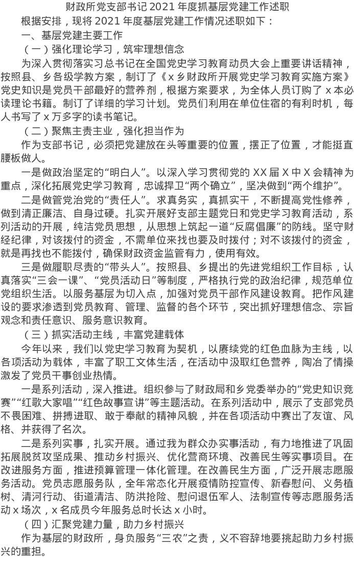 20220125财政所党支部书记2021年度抓基层党建工作述职