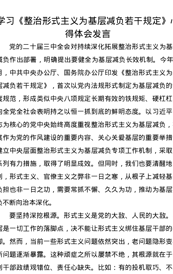 学习《整治形式主义为基层减负若干规定》心得体会发言