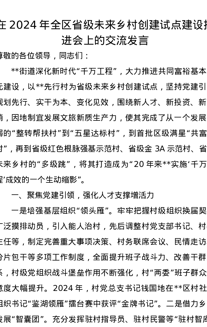 在2024年全区省级未来乡村创建试点建设推进会上的交流发言