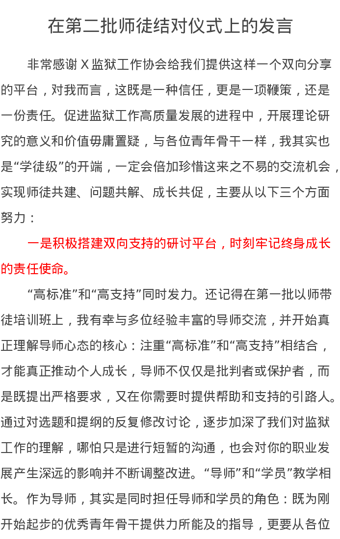 在第二批师徒结对仪式上的发言