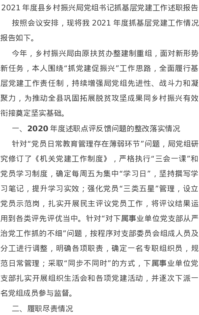 20220130-2021年度县乡村振兴局党组书记抓基层党建工作述职报告