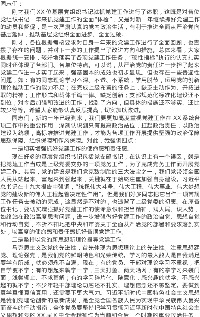 20220208在基层党组织书记抓党建工作述职评议考核会上的讲话