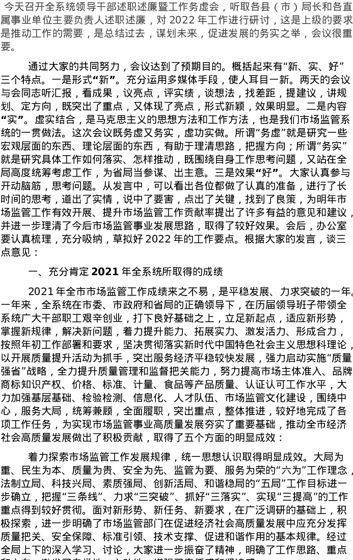 20220210在市场监管系统述职述责述廉暨工作务虚会议上的总结讲话