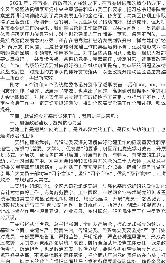 20220223-2022年抓基层党建工作述职评议考核会议讲话