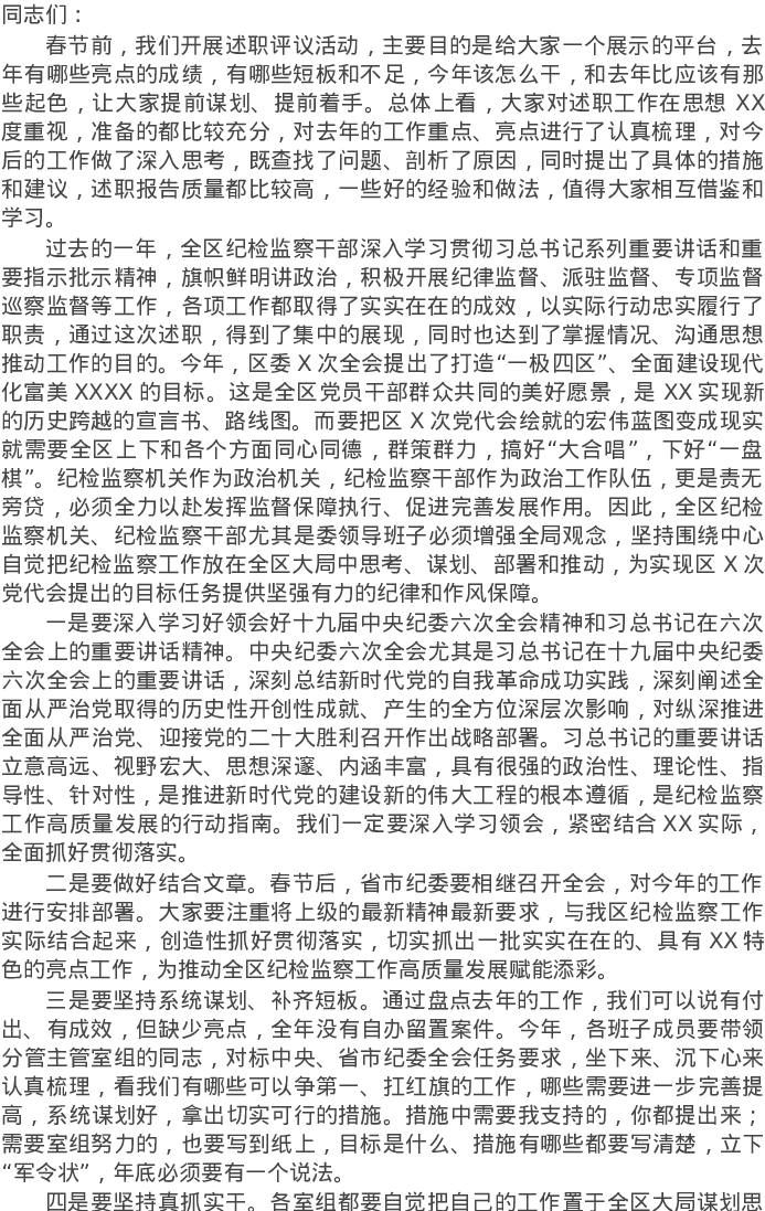 20220301在2022年全区纪委监委述职会议上的讲话