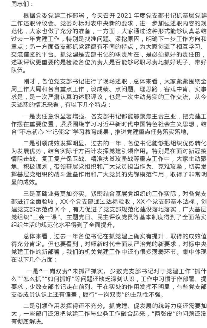20220331省直机关党支部书记抓党建工作述职评议上的讲话
