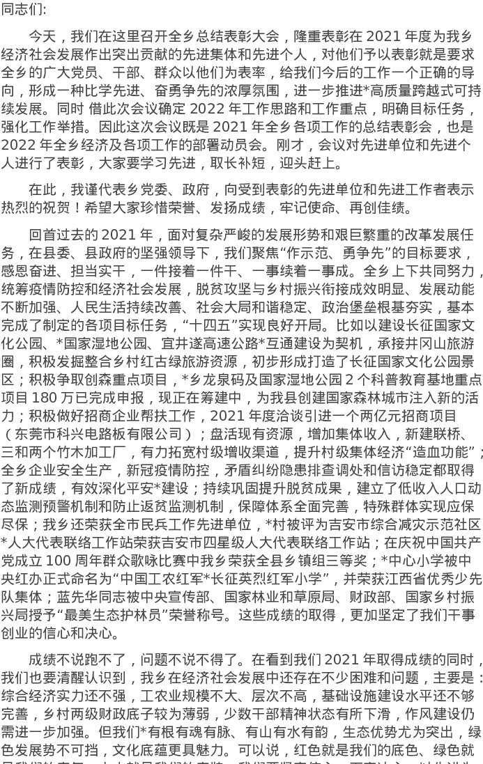 20220503在全乡2021年度高质量发展表彰暨基层党建述职评议会议上的讲话