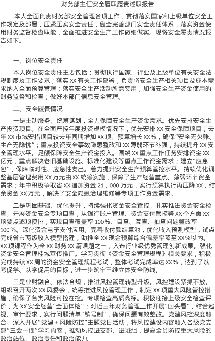 20220616财务部主任安全履职履责述职报告