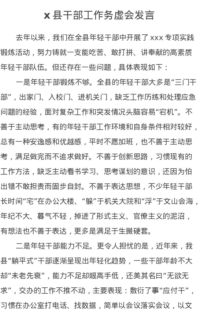 x县干部工作务虚会发言