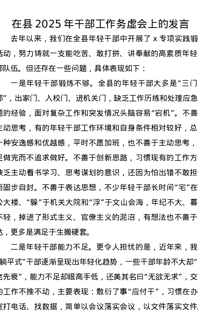 在县2025年干部工作务虚会上的发言