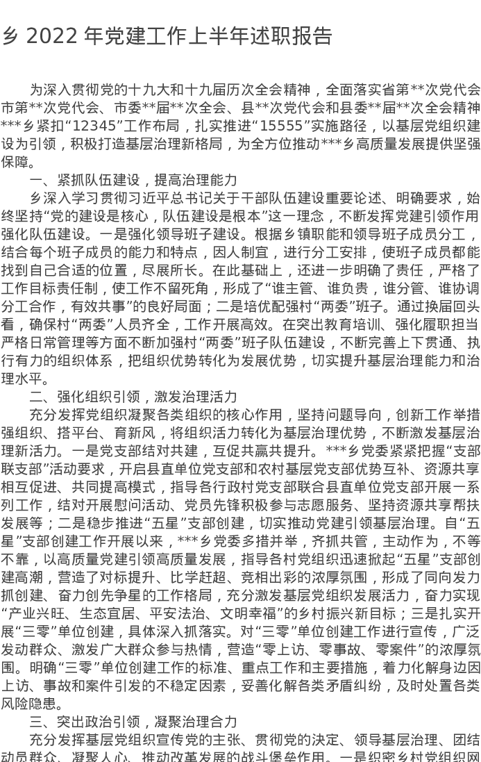 20220727乡2022年党建工作上半年述职报告