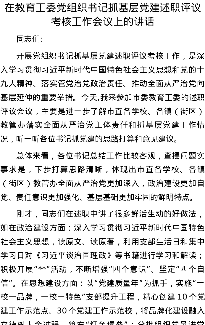 20220826在教育工委党组织书记抓基层党建述职评议考核工作会议上的讲话