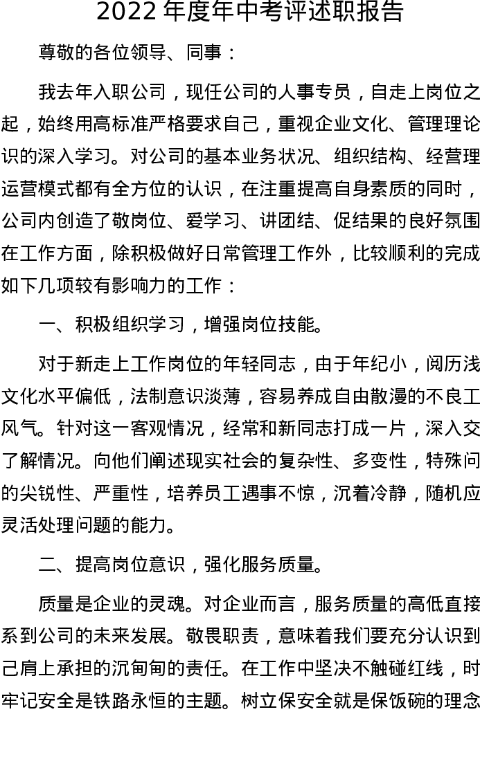 202209052022年度年中考评述职报告