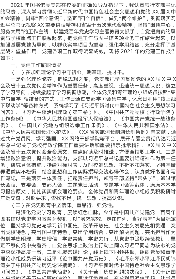 学校图书馆党支部2021年党建工作述职报告