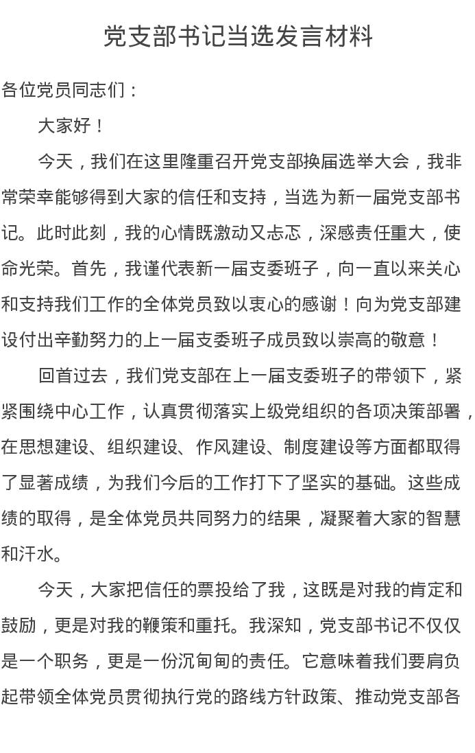 党支部书记当选发言材料
