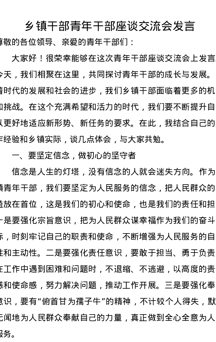 乡镇干部青年干部座谈交流会发言